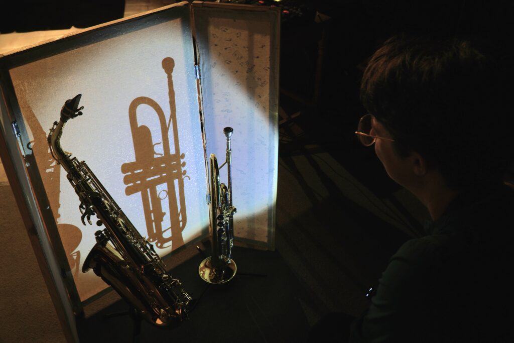 Heureusement, Double-Croche a une lumière magique qui va réveiller de mystérieuses ombres chinoises et permettre à nos deux personnages de découvrir (en même temps que leur public !) une quinzaine d’instruments de musique, y compris des instruments moins courants comme le tuba ou le baryton. L’objectif est d’éveiller la curiosité musicale des bambins et d’élargir leur horizon sonore.